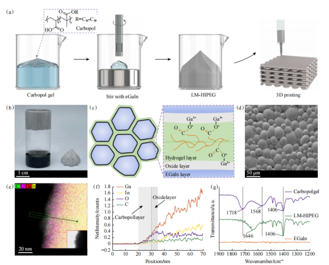 新型粉末與油墨:Lin團(tuán)隊開發(fā)液態(tài)金屬乳化凝膠油墨,結(jié)合水凝膠與鎵銦合金,實現(xiàn)高分辨率打印,如圖4;Ibrahim團(tuán)隊用亞微米粉末提升SS316L力學(xué)性能,優(yōu)于傳統(tǒng)工藝。